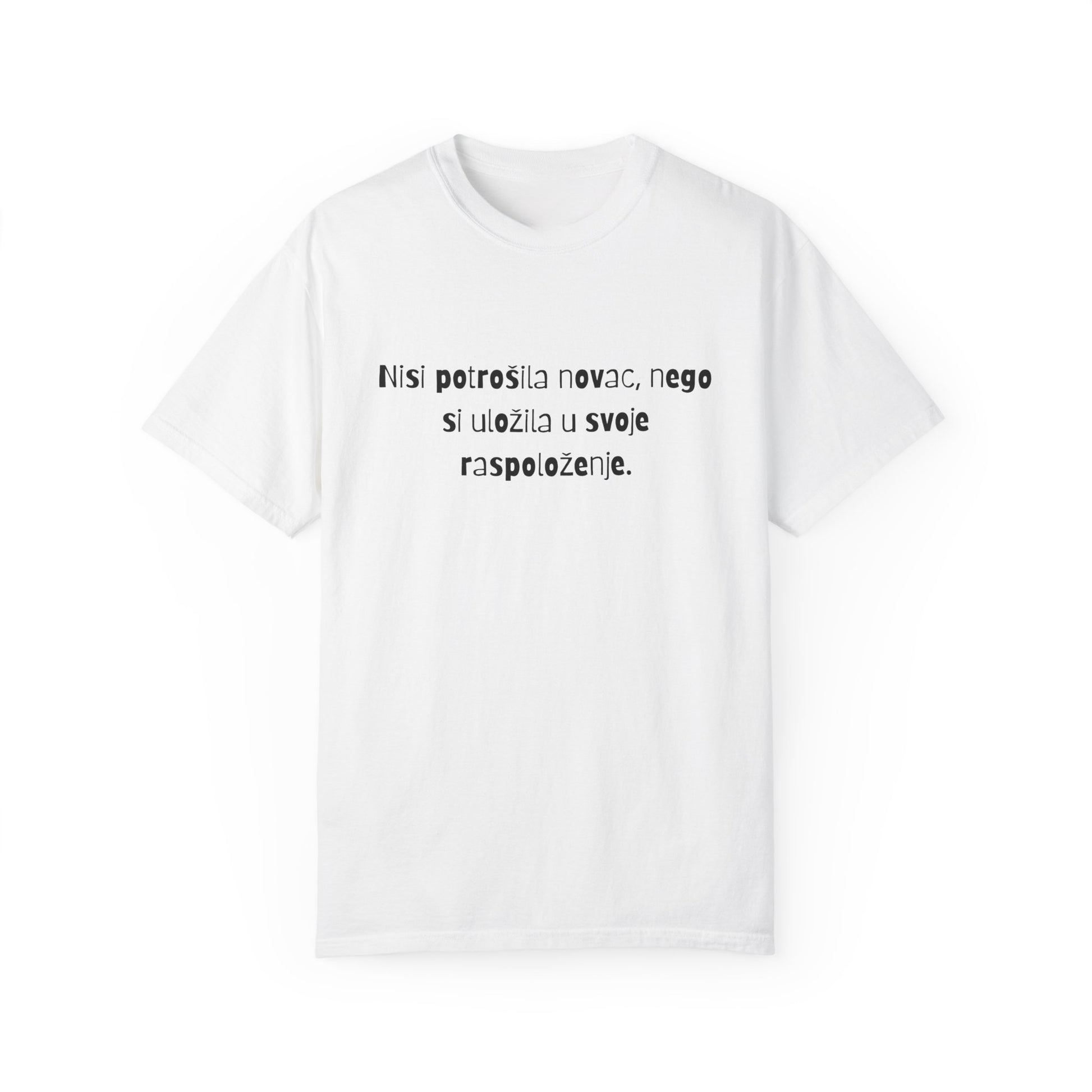 - - Štampa "NISI POTROŠILA NOVAC, NEGO SI ULOŽILA U SVOJE RASPOLOŽENJE" na grudima